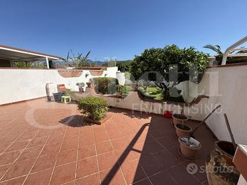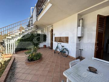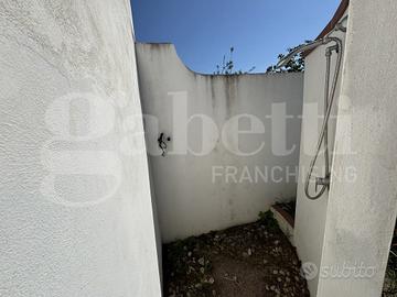 Giardino Retrostrante, in parte pavimentato a terrazzo, attrezzato anche di doccia esterna, un'oasi di verde per godere del sole e dell'aria aperta e di momenti conviviali; Veranda Antistante, spaziosa e ideale per pranzi all'aperto o momenti di relax.