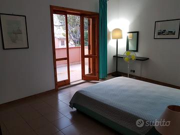 L'appartamento è situato al primo piano con ingresso, 2 camere da letto, sala (Tot. 6 posti letto), wc con doccia, cucinino ed ampio terrazzo.