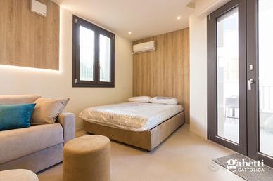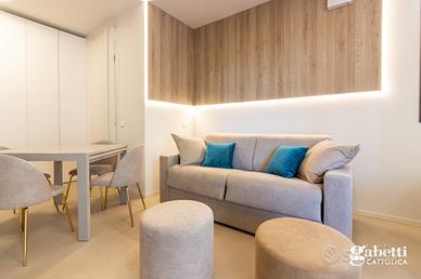 ULTIMI APPARTAMENTI DISPONIBILI IN ESCLUSIVA! GABICCE MARE LOC. DOLCE COLLE In una delle zone più esclusive e ricercate, comoda al mare e vicino ai servizi, proponiamo le residenze di Villa Aurora. 9 appartamenti eleganti, rifiniti con materiali pregiati e arredati con stile e qualità. Corredati di complementi di arredo, elettrodomestici e tendaggi interni ed esterni, come da immagini. Diverse tipologie con ingresso indipendente, monolocali, bilocali e trilocali tutti con giardini e terrazzi, totalmente allestiti con arredi da esterno. Disponibilità di posti auto e box auto. C.e in richiesta. Maggiori info in agenzia. Rif. C213/8