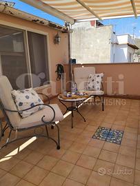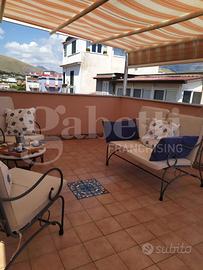 Luminoso e panoramico appartamento con incantevole terrazzo di circa 25 mq. Posto in palazzina bifamiliare, si sviluppa su due livelli ed è in buone condizioni interne, pronto per essere abitato, completo di arredo . Dispone di due camere da letto, bagno, soggiorno con angolo cottura e terrazzo vista mare dove potersi rilassare e trascorrere piacevoli momenti. L'ampio parcheggio gratuito è il valore aggiunto che assicura grande facilità di parcheggio.