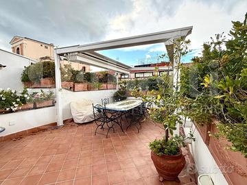 L' ampio terrazzo attrezzato, completo di pergo-tenda motorizzata, con l'atro sovrastante e panoramico terrazzo, sono ideali per cene all'aperto o momenti di relax