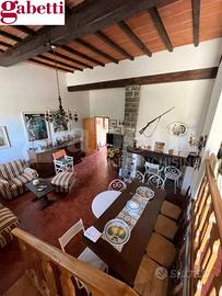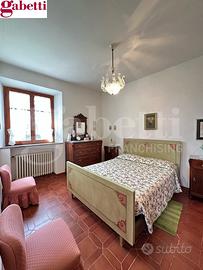 Rif. S2601 - Gaiole in Chianti - San Sano - Indipendente in pietra giardino - Nel cuore del Chianti Storico, in uno dei borghi romanici più belli d'Italia, villetta indipendente in tipico stile toscano di 112 mq catastali con struttura in pietra, loggia ed antica aia, travi e travicelli. Giardino esclusivo di circa 1700 mq completamente recintato e pianeggiante. L'immobile internamente è formato da ingresso, cucina, ampia zona giorno con camino ed altezze a doppio volume, tre camere da letto e due bagni finestrati. Sufficiente stato di manutenzione. Completa la proprietà cantina finestrata di circa 10 mq. Ape F - Ipe 256,93 kWh/m*anno - € 360.000