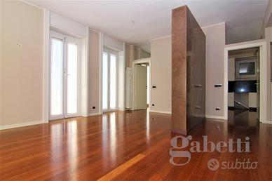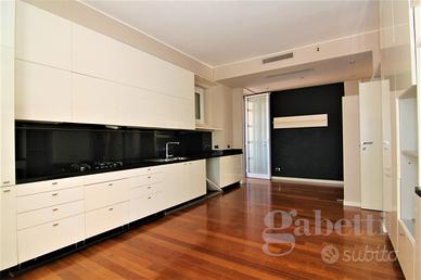 L'appartamento si trova in posizione adiacente la zona pedonale, ben servita dai mezzi pubblici, con la stazione ferroviaria e la fermata dell'autobus a breve distanza, rendendo gli spostamenti comodi e veloci. Inoltre, la presenza di bar, caffè e ristoranti nelle vicinanze offre la possibilità di godersi piacevoli momenti di relax e socialità senza dover percorrere lunghe distanze. Per le famiglie con bambini, la presenza di asili/scuole nelle immediate vicinanze rappresenta un ulteriore vantaggio, garantendo un'infrastruttura educativa a portata di mano; inoltre, la presenza di stazioni di ricarica per veicoli elettrici e di un parcheggio, agevola chi possiede un'auto e desidera muoversi in modo sostenibile. La zona circostante offre inoltre servizi essenziali come medici, farmacie, negozi al dettaglio e supermercati. L'appartamento, PARZIALMENTE ARREDATO, è caratterizzato da finiture di alta qualità, spazi luminosi e ben distribuiti, è ubicato al quinto piano servito da ascensore, unico appartamento al piano, si compone di ingresso con guardaroba, ampio salone con esposizione angolare Largo Camussi/Corso Italia e servito da balcone così come la cucina, separata, ampia ed abitabile, con ingresso di servizio da loggia collegata all'ascensore di servizio. Prima bagno con vasca, disimpegno notte arredato con armadiature a muro, ripostigli. La zona notte è completata da 3 camere, di cui 2 matrimoniali, una camera singola ed un servizio con doccia. La quarta camera, adiacente il terzo bagno/lavanderia, è ideale, oltre che a c