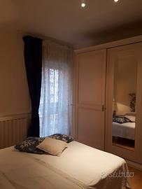 L'appartamento offre un luminoso soggiorno con balcone e cucina a vista, camera matrimoniale, camera doppia e bagno con doccia.