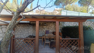 Giardino con gazebo in legno di 18-20 mq, comodo ripostiglio di attrezzatura,