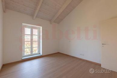 In contesto collinare tranquillo e riservato, in posizione dominante e panoramica circondato dal verde, ampio bilocale di 65 mq. di recente realizzazione.