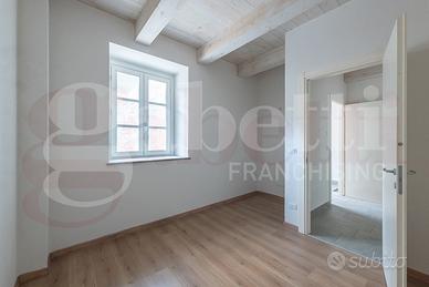 In contesto collinare tranquillo e riservato, circondato dal verde ma comodo alla viabilità, appartamento di recente realizzazione composto da tre locali e disposto su due livelli per una superficie totale di circa 115 mq..