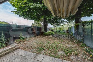 La soluzione si compone al piano terra di un ampio living con cucina a vista e affaccio diretto al giardino pertinenziale ad uso esclusivo di 125 mq., servizi e un locale ad uso cantina; al piano superiore due camere e servizi.