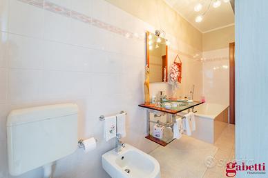 Questa elegante residenza è composta da ingresso su disimpegno, cucina abitabile, sala da pranzo, soggiorno, due luminose camere da letto e due bagni accoglienti.
