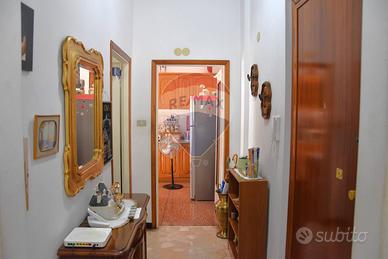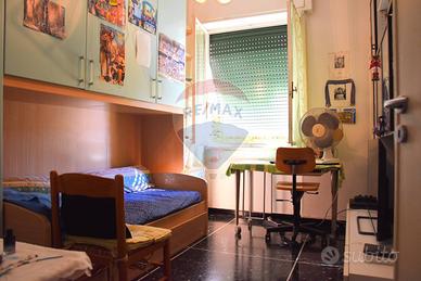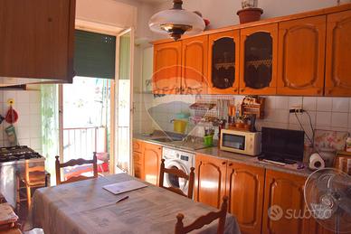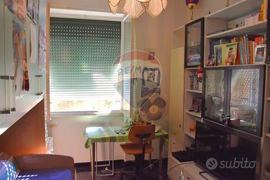 Ingresso in ampio corridoio , sulla destra la cucina abitabile con balcone , una camera matrimoniale con grande finestra , 2 camere singole di cui una con terrazzo , ben 2 dispense , bagno con vasca-doccia.
