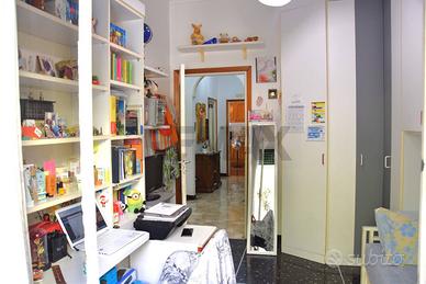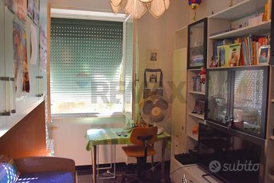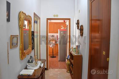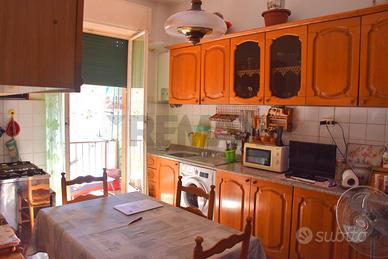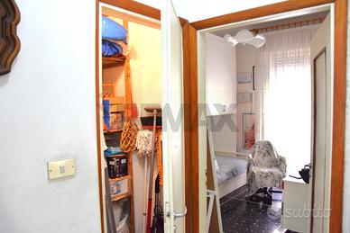 Ingresso in ampio corridoio , sulla destra la cucina abitabile con balcone , una camera matrimoniale con grande finestra , 2 camere singole di cui una con terrazzo , ben 2 dispense , bagno con vasca-doccia.