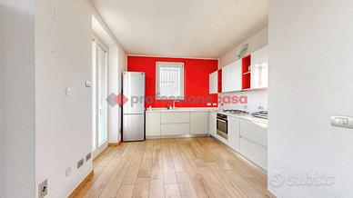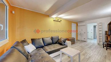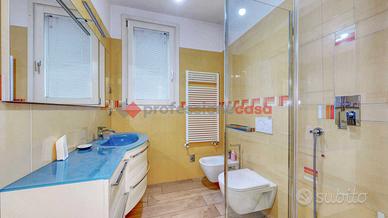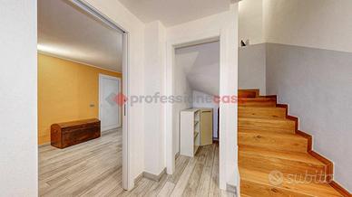 - Al primo piano si sviluppa un ampio trilocale con soggiorno e cucina a vista con accesso a un balcone, bagno e camera da letto con secondo balcone. Tramite scala in muratura si accede al sottotetto abitabile, con zona studio/hobby e uscita su terrazzo privato, camera matrimoniale con bagno in camera e cabina armadio. Questo appartamento è in classe energetica C e dispone anch'esso di riscaldamento a pavimento, aria condizionata e infissi in PVC.