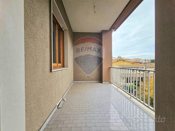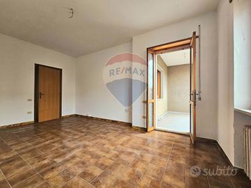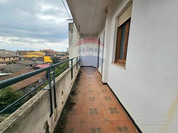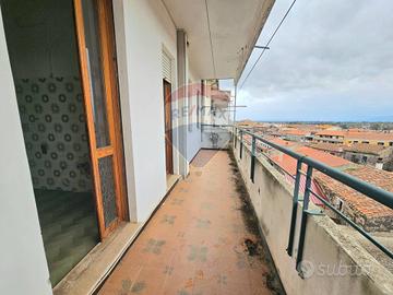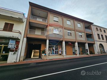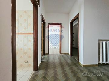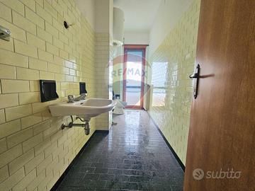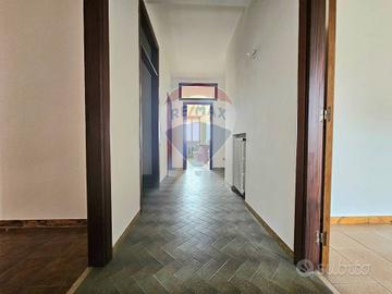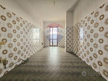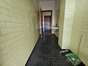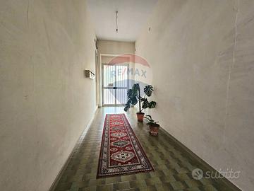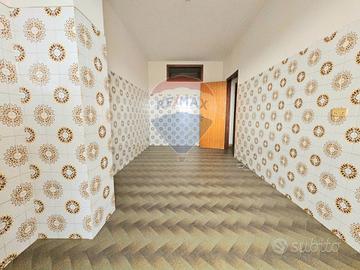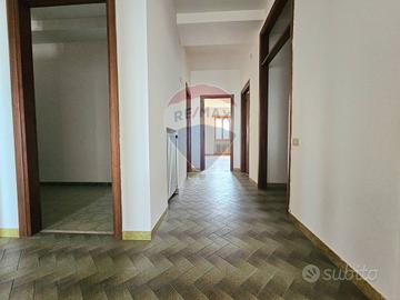 Superato il portone di ingresso abbiamo un ampio salone sulla destra, e tramite disimpegno raggiungiamo 2 vani utilizzati come camere; nella prima camera è presente la portafinestra che ci permette di accedere al balcone con affaccio su Corso Umberto I. Proseguendo abbiamo ripostiglio, cucina con accesso sul balcone retrostante, due bagni e un altro vano utilizzato come camera.