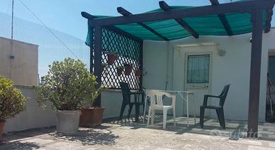 Vendo appartamento al primo piano (87mq) con ingresso autonomo, ampio soggiorno con caminetto, cucina con tavolo pranzo e piccolo balcone, camera da letto (con aria condizionata) e balcone, piccola cameretta ricavata su due lati con muro e 2 lati con tende in stoffa; bagno con vasca/doccia e 2 terrazze (66mq) di cui 1 più ampia con gazebo fisso in legno e angolo barbecue. E' presente anche un vano tecnico di 21mq