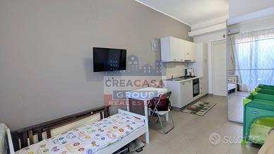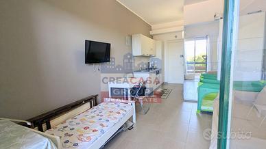 Crea Casa Group propone in vendita panoramico monovano RISTUTTURATO E ARREDATO con vista Etna distante solo 100 mt dalla spiaggia, l'immobile è ubicato all'interno del residence "Les Roches Noires" complesso con servizio di portineria , campi da Tennis, piscina, bambinopoli, bar ecc....