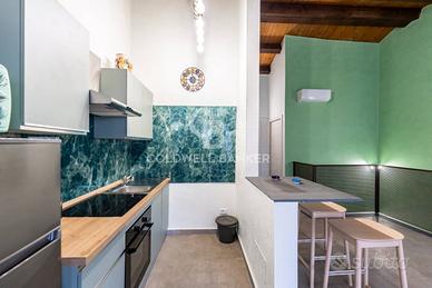 Al primo piano si trova un ampio open space che combina zona cucina, soggiorno e una camera da letto, il tutto arredato con gusto e dotato di tutti i comfort moderni.