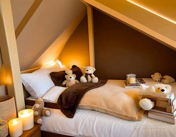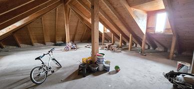 L'interno della mansarda, interamente in legno, offre un'atmosfera calda e accogliente, perfetta per creare ambienti su misura: