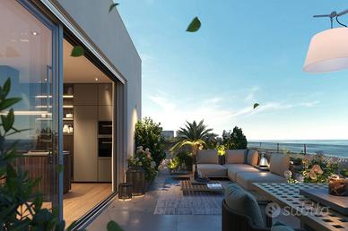 Rif.A180 GIULIANOVA: Sul prestigioso Lungomare Zara di Giulianova nasce MOMA: una residenza moderna e sopraffina, composta da due edifici speculari uniti da una piazza centrale. Un progetto che accompagna la quotidianità con armonia e misura, offrendo uno stile di vita elegante, protetto ed emozionante. Le linee essenziali, i materiali di pregio e le tecnologie all'avanguardia definiscono un nuovo modo di abitare il fronte mare, dove il design dialoga con la natura circostante. I frangisole integrati nelle facciate modulano la luce naturale, garantiscono privacy e arricchiscono i prospetti con un dettaglio caldo e distintivo. Affacciato direttamente sul mare e protetto da una nuova area verde naturale, MOMA sorge in una zona riservata, ben collegata e in continua evoluzione. La residenza è composta da 76 appartamenti distribuiti su 6 piani: alcune unità godono di una vista mare totalmente aperta, altre si affacciano verso i monti dell'entroterra, offrendo inquadrature panoramiche differenti e suggestive. Tutti gli appartamenti sono dotati di terrazzi privati, progettati per valorizzare il rapporto con il paesaggio circostante, trasformando ogni spazio esterno in un'estensione naturale dell'abitazione. SALE DA BAGNO DI DESIGN Nelle sale da bagno, ogni elemento contribuisce a creare un'atmosfera curata, elegante e funzionale: - Docce filo pavimento - Sanitari sospesi - Dettagli progettati con estrema precisione La possibilità di scegliere tra diverse finiture permette di personalizzare gli ambienti con combinazioni materiche e cromatiche raffinate. TECNOLOGIA AVANZATA, INTEGRATA CON DISCREZIONE Le tecnologie all'avanguardia sono inserite con eleganza per garantire efficienza, comfort e sostenibilità: - Residenze completamente gas-free - Impianti autonomi - Riscaldamento a pavimento - Ventilazione meccanica controllata - Predisposizione per impianto domotico - Predisposizione per colonnine di ricarica elettrica - Pannelli fotovoltaici condo