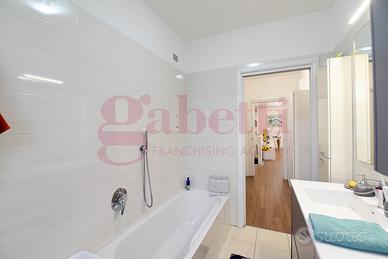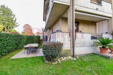 L'abitazione gode di ingresso indipendente dal giardino ed è composta da un ampio soggiorno con cucina a vista con affaccio su un terrazzino, disimpegno, due camere da letto di cui una con balcone e doppi servizi finestrati.