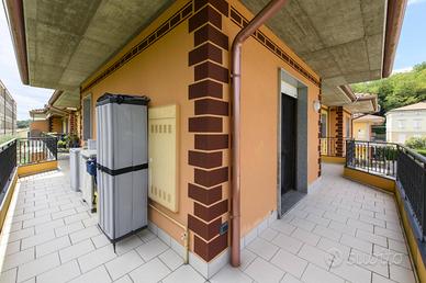 La particolarità di questo immobile: un lungo terrazzo con doppia uscita, una dalla cucina e una dalla camera matrimoniale che permette di essere arredato con diverse aree fruibili in base alle esigenze dei nuovi proprietari.