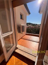L'immobile è situato al quarto piano ed è composto da soggiorno-cucina, disimpegno, bagno-wc e due camere da letto nonchè due terrazze di 5 mq ciscuna.