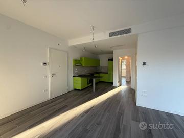 Soggiorno con cucina a vista e grande vetrata scorrevoleGiardino privato di facile gestioneDue camere da lettoBagno con docciaCantina collegata da ascensore di ultima generazionePosto auto coperto di proprietàcucina arredataPronta consegna. Ideale per chi cerca qualità, comfort e una posizione strategica.