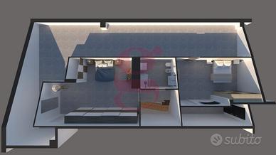 Proponiamo in vendita lussuoso attico-duplex con terrazzo per una superfice totale di 320 mq catastali e box auto di circa 30 mq sito nel cuore pulsante di Gragnano (NA), precisamente alla Via Roma, nel prestigioso Parco Carmen. Questa esclusiva proprietà posta al sesto e settimo piano si sviluppa su due livelli: il primo di 120 mq interni con una zona giorno interamente servita da terrazzo di 33 mq che offre una visuale panoramica su Vesuvio e Monti; quello superiore di circa 75 mq utili con deposito perimetrale di 76 mq. Gli ampi spazi sono così disposti: all'ingresso, sulla destra, abbiamo una prima camera jolly attualmente adibita a studio con affaccio sul terrazzo. A seguire ci accoglie una doppia zona living finemente arredata con un grazioso tavolo da pranzo, due comodi sofà e ampia consolle. L'ambiente risulta estremamente luminoso grazie alla presenza di ben due balconi panoramici con uscita sull'ampio terrazzo. Adiacente alla zona giorno c'è l'ampia cucina abitabile che gode anch'essa dell'accesso al terrazzo. A completare questo primo livello due spaziose camere da letto matrimoniali, di cui una con balcone e l'altra con finestra, e bagno finestrato munito di vasca incassata. Attraverso la scala interna in legno si sale al secondo livello, anch'esso molto luminoso grazie all'istallazione dei velux. Qui troviamo due ampie camere da letto, di cui una dotata di cabina armadio, e uno spazioso bagno servito di doccia. Un enorme vantaggio di questa residenza è la possibilità di ricavare due appartamenti perché anche il livello superiore è dotato di ingresso proprio. Infine arricchisce la soluzione un box auto doppio raggiungibile comodamente mediante l'ascensore.