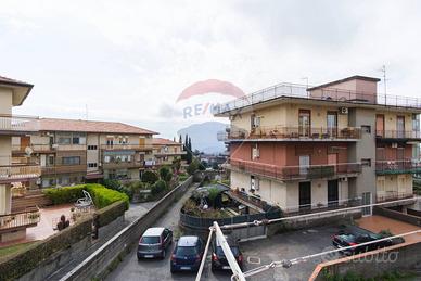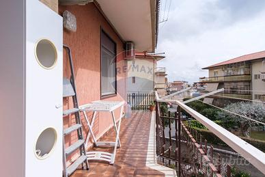 Al centro di Gravina di Catania, ristrutturato, 3 vani + cucina abitabile, servizi, balconi vista mare e Catania, area libera intorno, garage singolo 14mq catastali.