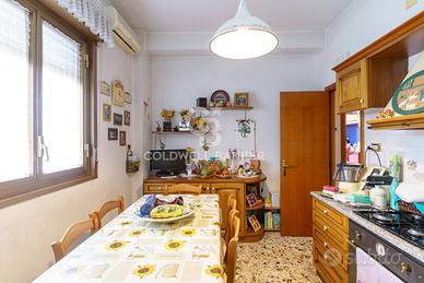 ingresso su saletta, salone doppio con esposizione su via Etnea e uscita su terrazzo di circa 16 mq, cucina abitabile con affaccio su balcone, tre camere da letto, servizio di rappresentanza con vasca, lavanderia interna con servizio. Riscaldamento termoautonomo e climatizzato.