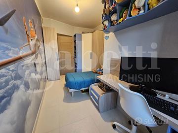 L'appartamento è stato recentemente ristrutturato, garantendo un ambiente moderno e accogliente. All'interno, troverete un luminoso salone con sala da pranzo, perfetto per momenti di relax e convivialità, una cucina abitabile completamente attrezzata e tre spaziose camere da letto di cui una con cabina armadio, ideali per assicurare la privacy di ogni membro della famiglia; dotato di due bagni di cui uno con vasca e l'altro con doccia.