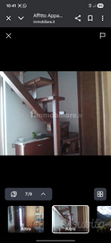 L'appartamento è su 2 piani. Al piano terra cucina abitabile arredata. Di tutto. Un piccolo soggiorno. Un balcone. Con una vista particolare sulla valle. Bagno con doccia e lavatrice. Scala@che porta sulla mansarda molto accogliente, divisa in 2 ambienti con 2 letti matrimoniali. E un divano letto.