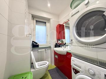 Le due camere da letto sono entrambe di buona metratura e adatte sia a nucleo familiare sia a chi necessita di uno spazio aggiuntivo per studio o smart working. I doppi servizi, entrambi finestrati, rappresentano un valore aggiunto. Completano la proprietà due balconi e una cantina al piano interrato.