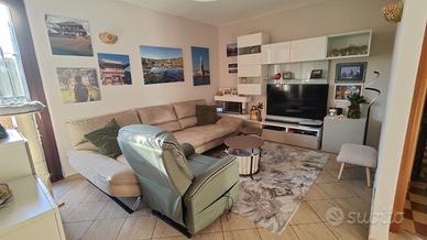 - GUARDAMIGLIO- APPARTAMENTO IN BIFAMILIARE - In contesto tranquillo proponiamo in vendita un splendido appartamento in bifamiliare con ingresso indipendente. L'immobile è situato al piano terra ed è composto da un luminoso soggiorno con cucina a vista, tre camere da letto e due bagni entrambi finestrati e dotati di box doccia. Al piano interrato troviamo un ampio box oltre ad una cantina, offrendo comodi spazi accessori. A completare la proprietà, un curato giardino e un ampio terrazzo in comune con l'altra unità, ideali per piacevoli momenti all'aperto. La soluzione si distingue per comfort e funzionalità, grazie anche al riscaldamento a pavimento e all'impianto fotovoltaico.