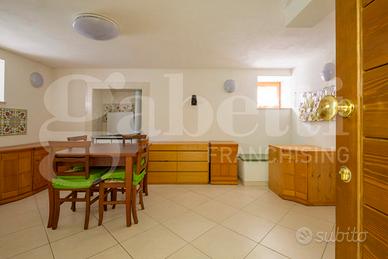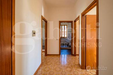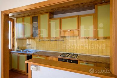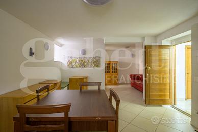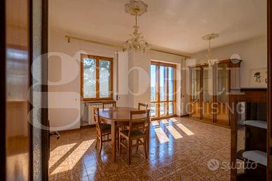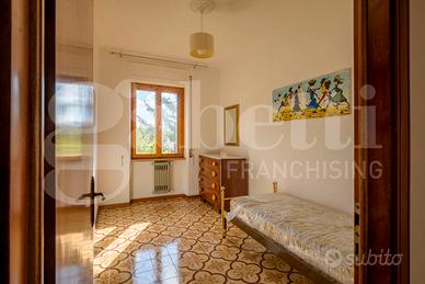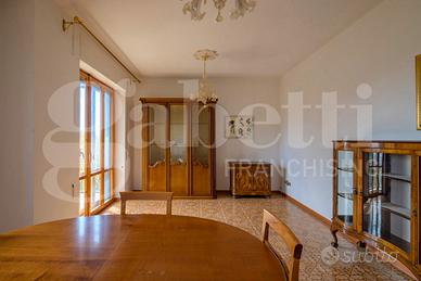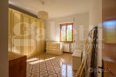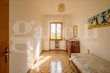 Appartamento al piano secondo di una palazzina bifamiliare, situata in posizione interna e riservata. Si compone di ingresso, luminoso salone, zona pranzo con cucina a vista, due camere matrimoniali di cui una con bagno, camera singola, studio,secondo bagno. La proprietà comprende inoltre un locale pluriuso recentemente ristrutturato con bagno.