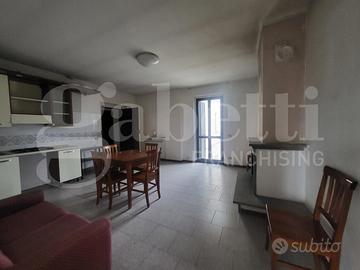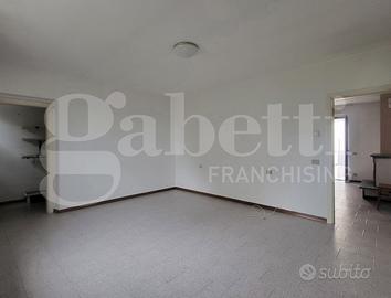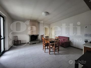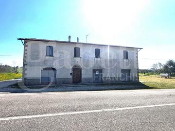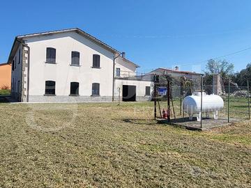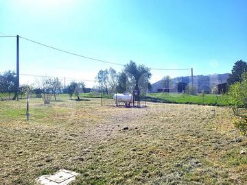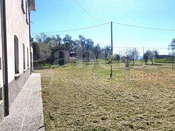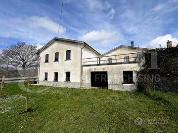 In trifamiliare, appartamento al piano primo composto da soggiorno, cucina abitabile con camino e accesso ad ampia terrazza, 2 camere, bagno. A piano terra due garage, un fondo allo stato grezzo. Completa la proprietà un terreno di circa mq 5.000 con alberi da frutto.