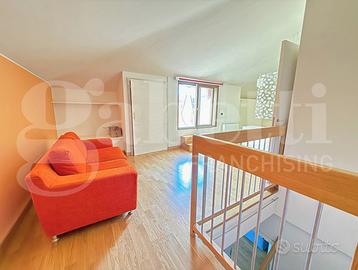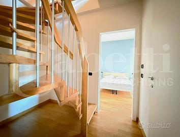 Una scala interna porta al piano superiore, dove troviamo una spaziosa camera matrimoniale, un secondo bagno e un ulteriore terrazzo.