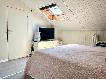 Al piano secondo troviamo un mansardato con ingresso su ampia camera matrimoniale con bagno.
