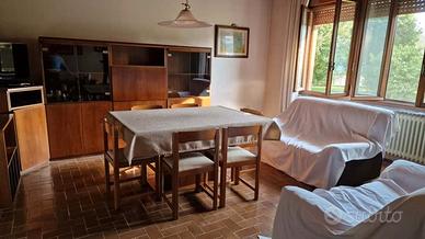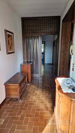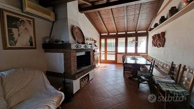Appartamento in bifamiliare al piano terra con giardino di circa 400 mq, abitabile da subito, composto da ingresso, soggiorno, cucina separata, tre camere matrimoniali, bagno finestrato, bagno/lavanderia, sala da pranzo travata a vista con caminetto a legna, garage doppio in larghezza, di circa 42 mq, posizione ottima in centro paese! Libera subito.