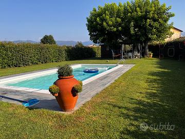 Vendesi appartamento in bifamiliare zona Pistoia Sud, primo piano + secondo piano. Piano primo: mq 50,27, Piano secondo: mq 64,07 --> Totale P.1° e P.2°= 114.34 mq escluso vano scale Terrazza/Lastrico Solare: mq 30,41 Rimessa: mq 24,07 Resede laterale lato rimessa: mq 29 Giardino con piscina completamente ristrutturata nel 2020: mq 900 Impianti idraulici ed elettrici del 2015. Camere da letto con aria condizionata (2025), la casa è dotata di allarme e di impianto di video sorveglianza (2022). NON PERDITEMPO E CURIOSI