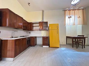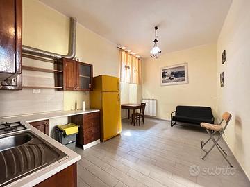 Soluzione composta da salone con angolo cottura, camera matrimoniale e bagno finestrato con box doccia.