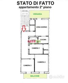 Attualmente l'appartamento presenta una zona giorno con cucina e comodissima verandina, un bagno, ripostiglio e 3 camere da poter utilizzare a tuo personalissima esigenza.