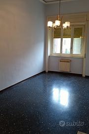 Appartamento in condominio di tre piani al piano rialzato con 2 camere da letto, 1 studio (che può essere utilizzato anche come terza camera), 1 bagno con vasca, 1 cucina abitabile, 1 ampio salone con camino. La casa si affitta non arredata o parzialmente arredata se interessati. Posto auto non disponibile, ma a pochi metri c'è il parcheggio della stazione. No spese condominiali (solo costi di luce delle scale e pulizia delle scale).