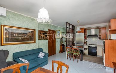 Internamento la soluzione è composta da un ingresso living su ampia zona giorno con angolo cottura, camera principale, cameretta e bagno. Da sottolineare la doppia esposizione dell'immobile che nonostante sia ad un piano basso risulta molto luminoso, dalla zona giorno si può accedere su un terrazzino mentre sul retro troviamo un'ampia terrazza ad uso esclusivo di ca. 100mq con una striscia di terreno al fondo, ideale per chi ha il cane.