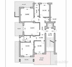 La soluzione prevede un meraviglioso terrazzo di mq 30 nella zona giorno e ampie balconate nella zona notte.