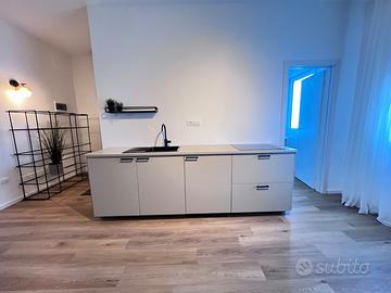 L'immobile, di circa 50 mq, è arredato con mobili nuovi ed è composto da un ingresso che conduce a una zona giorno luminosa, con cucina attrezzata con elettrodomestici moderni (piano cottura a induzione). La zona giorno è arredata con un tavolo da pranzo e un comodo divano letto matrimoniale. La zona notte è dotata di un letto matrimoniale, un armadio e una piccola cassettiera. Il bagno è finestrato ed è completo di box doccia e lavatrice.