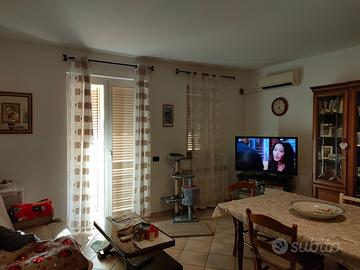 Teramo prima periferia; appartamento arredato di 120 mq commerciali con ingresso su sala con cucina a vista, tre camere, due bagni, due ampi balconi, posto auto in garage e fondaco. L'immobile dispone di ascensore.