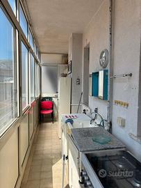 Un accogliente soggiorno con cucina a vista che si affaccia su un balcone, ideale per godersi un caffè al mattino o un momento di relax. Una camera da letto con balcone.