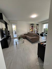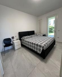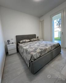 In elegante e moderno condominio di recente costruzione (2020), composto da sole 9 unità abitative totali. L'appartamento, libero su tre lati, è situato al piano terra rialzato rispetto al piano stradale. È composto dall'ingresso su luminoso soggiorno con cucina separata e rispostiglio/lavanderia adiacente, e da una zona notte che comprende una camera da letto padronale con bagno en suite, un'altra camera matrimoniale, una cameretta e un secondo bagno. Da tutto gli ambienti si accede all'ampio e curato giardino con verande coperte e grande pergolato. Completa la proposta comodo garage con posto auto e moto oltre che spazio per scaffalature/stoccaggio. Si vende parzialmente arredato. Altre caratteristiche principali: impianto a riscaldamento autonomo alimentato a metano, pompe di calore caldo/freddo in tutte le stanze, portoncino blindato, impianto d'allarme, impianto di irrigazione, finiture in marmo, classe energetica A1. Altre foto disponibili su richiesta
