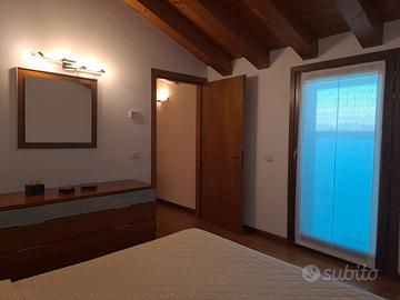 Il piano superiore si caratterizza per le altezze completamente abitabili ed il soffitto travato a vista: camera matrimoniale; camera singola; disimpegno; secondo bagno con doccia e lucernario. Da entrambe le camere si può uscire su ampia terrazza a tasca comprensiva di due vani tecnici chiusi.