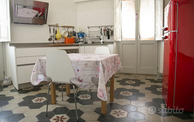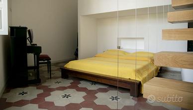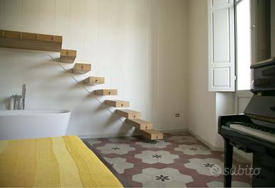 L'appartamento, recentemente ristrutturato preservando le bellissime cementine del pavimento, si trova al primo piano di un palazzo storico nel centro di Cagliari, inserito in una elegante palazzina nel quartiere Villanova, di fronte alla basilica di San Saturnino, in pieno centro città, prospiciente alle via Dante e San Lucifero, la via del museo ExMa. Si compone di un soggiorno con angolo cottura, piano a induzione e due balconcini. La camera da letto matrimoniale è dotata di soppalco con armadiatura su misura e scala a sbalzo in rovere, vasca da bagno e un balconcino. La camera singola dà sul cavedio, Nel bagno è presente un'ampia doccia a filo pavimento e la lavatrice.